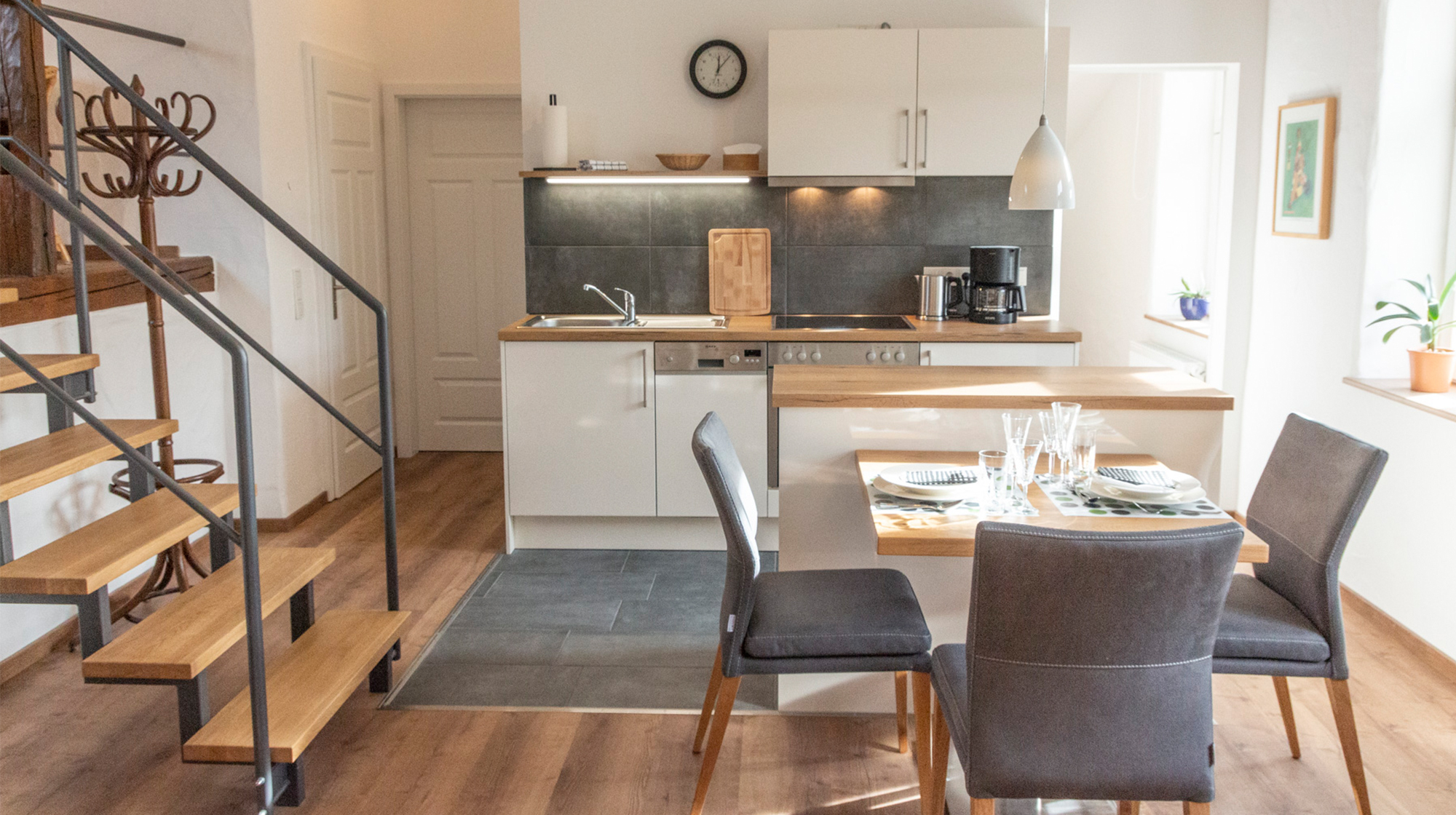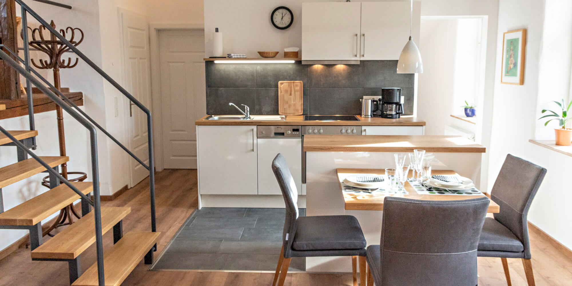 Die Ferienwohnungen sind über einen separaten Eingang erreichbar und hochwertig ausgestattet – mit allem, was Sie für einen erholsamen Urlaub benötigen. WLAN ist selbstverständlich vorhanden. PKW-Stellplätze sowie Unterstellmöglichkeiten für Fahrräder stehen zur Verfügung.